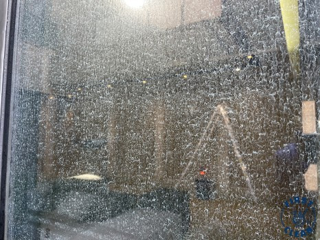 오염이 극심한 유리를 가진 현장으로, 유리에